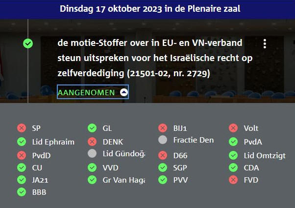 puur om de inhoud van de moties- en het stemgedrag. De rode en groene